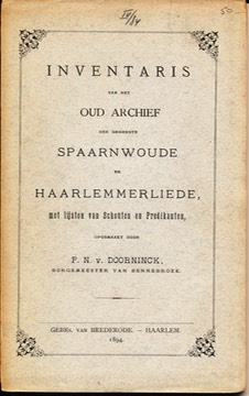 Inventaris van het oud archief der gemeente Spaarnwoude en Haarlemmerliede,